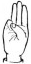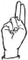 На ћирилици написано ДИНА КОШУТАРАЦ састоји се из 13 слова [?]. Исписано ћириличном једноручном азбуком за глувонеме: